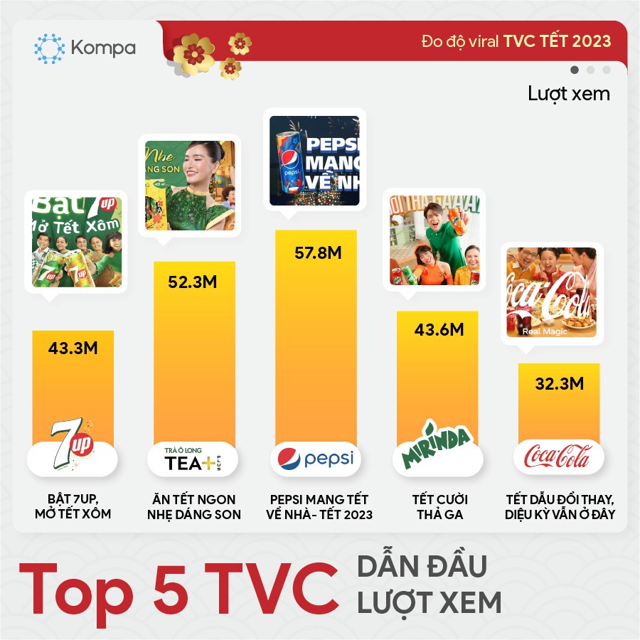 Tết luôn là thời điểm vàng để các Thương hiệu trình làng những TVC được ấp ủ ý tưởng và thông điệp đến Khách hàng, như cuộc đua “Marathon” đầy thử thách. Năm 2023 này, TVC Tết nào đang chiếm trọn tâm trí người tiêu dùng và có mức độ lan truyền khủng, cùng Kompa khám phá nhé.