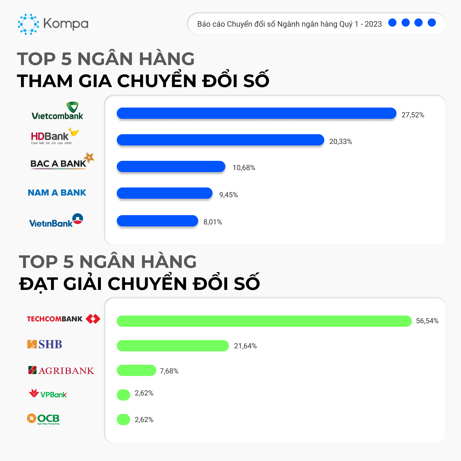 Cùng Kompa điểm qua thông tin báo cáo thảo luận xu hướng chuyển đổi số ngành Ngân hàng trong Q1 2023.